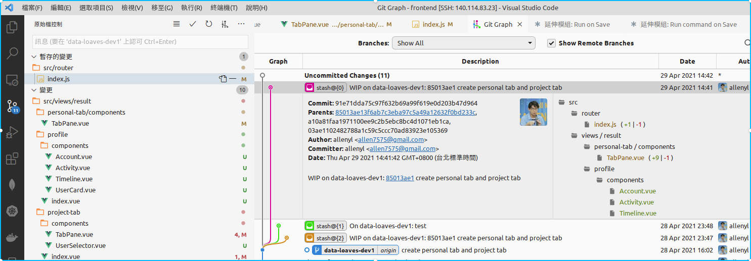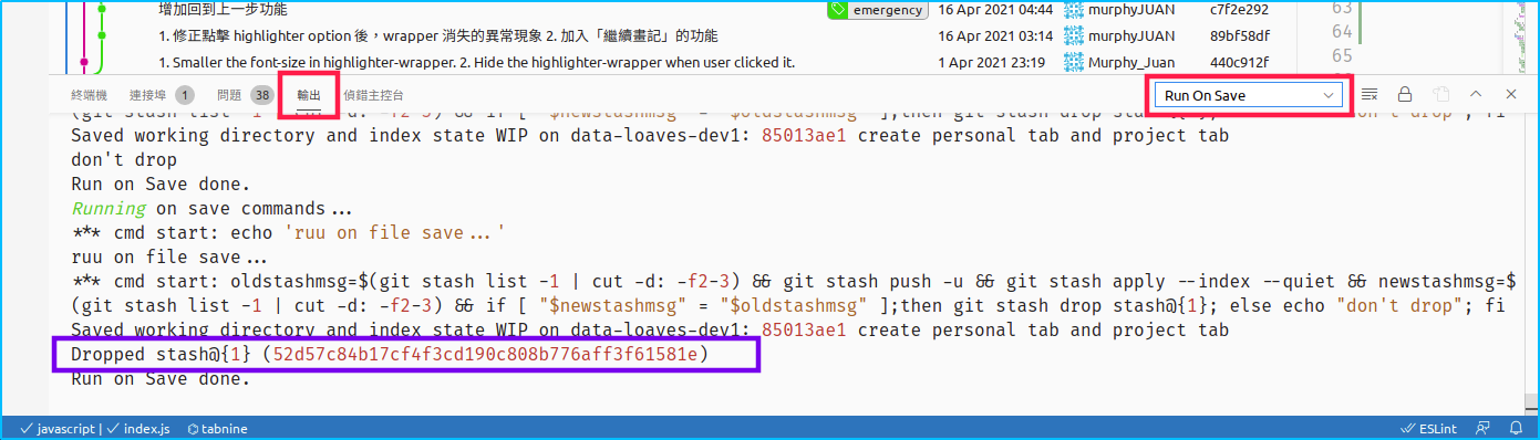 設定好後儲存,以後每當按下 ctrl+s 儲存時,就會自動產生一個 stash 快照紀錄: